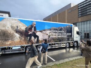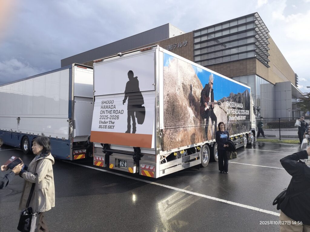 入口の外には、なんと大きな浜田省吾ツアートレーラーが並んでいて、ファンたちが写真撮影の列を作っていました。